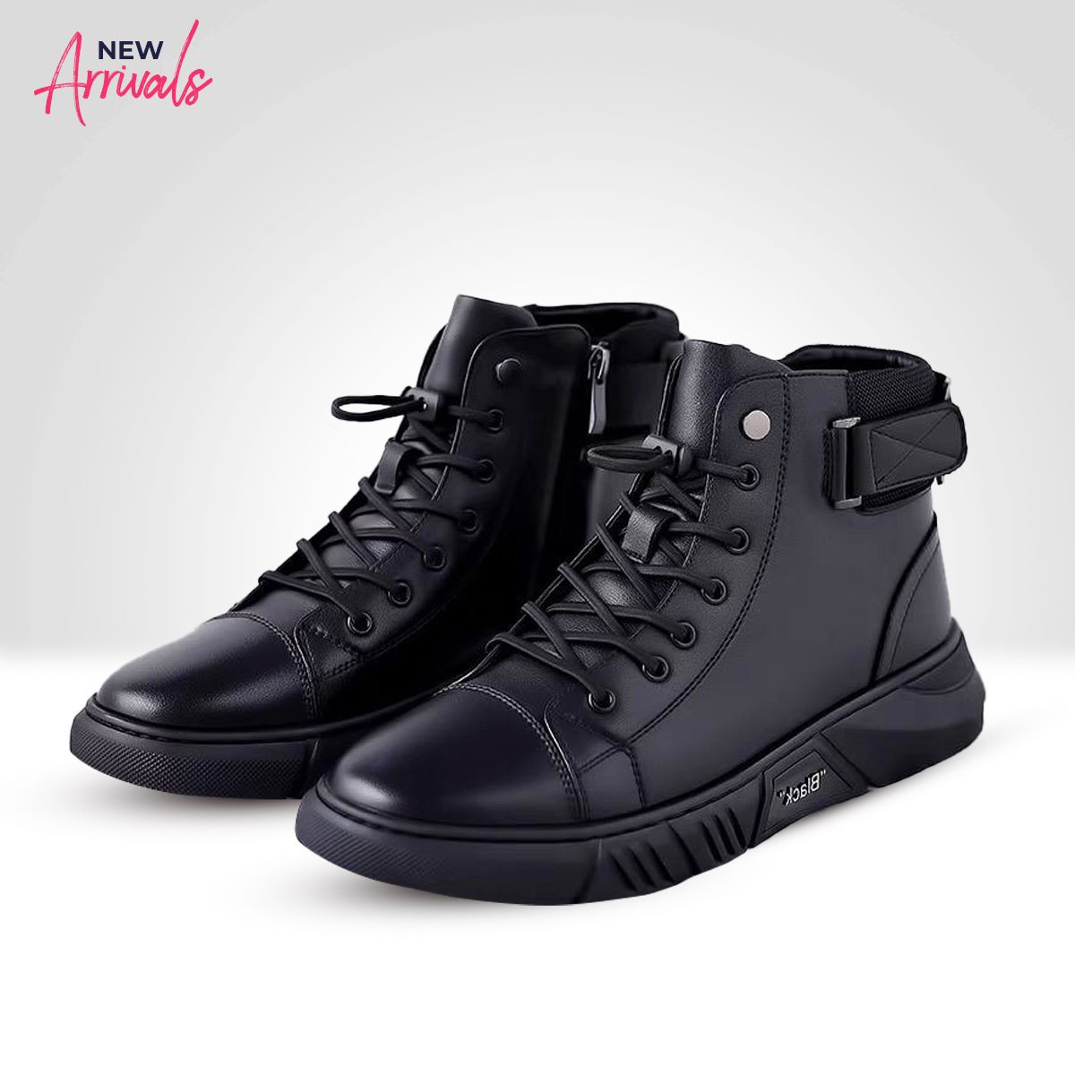High-top Casual Leather Boots, Round Toe Stylish Casual Shoe, Waterproof, Non-Slip, Shock